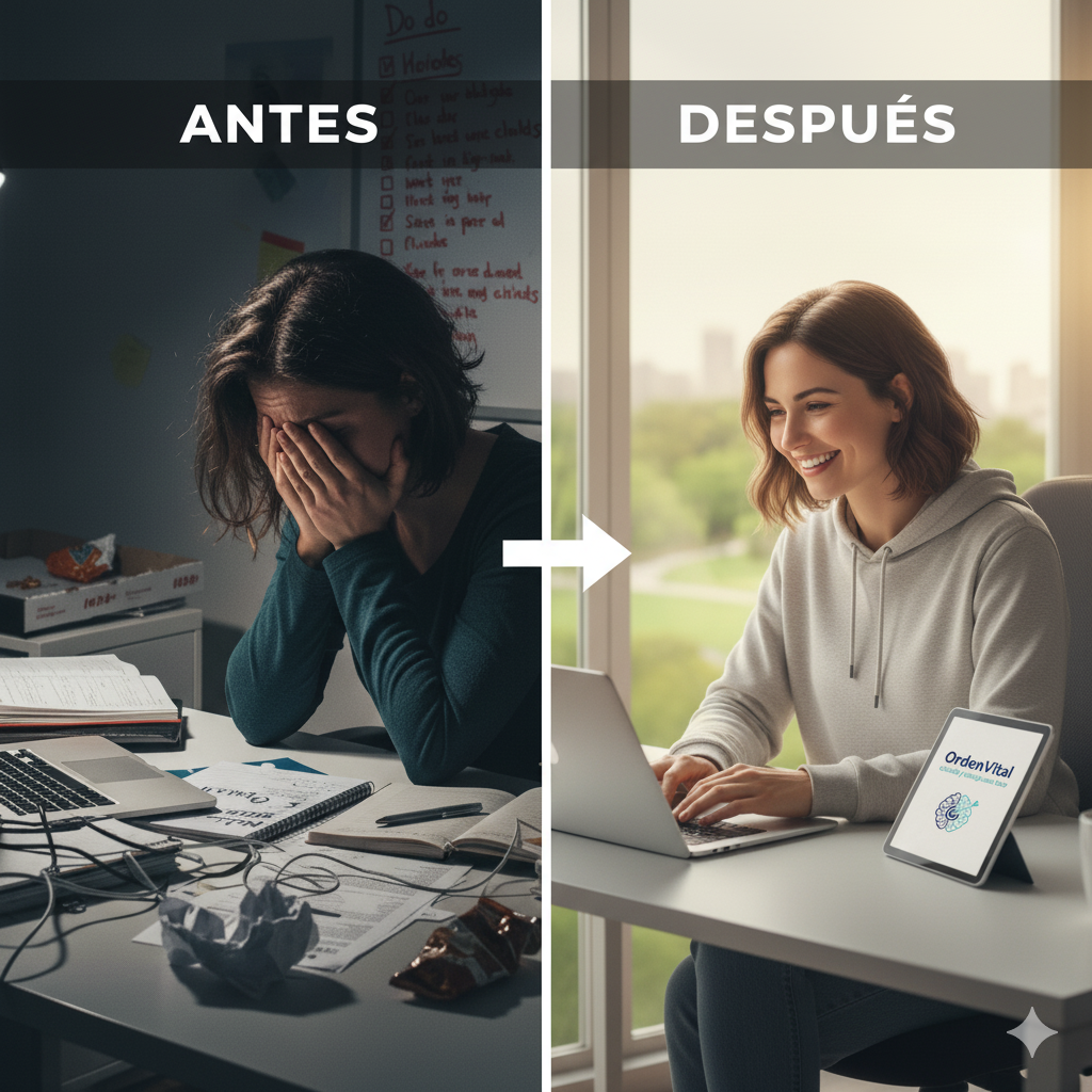 Por eso nació el Método OrdenVital: un sistema pensado para recuperar tu foco, organizar tu tiempo y avanzar hacia tus metas sin estrés.